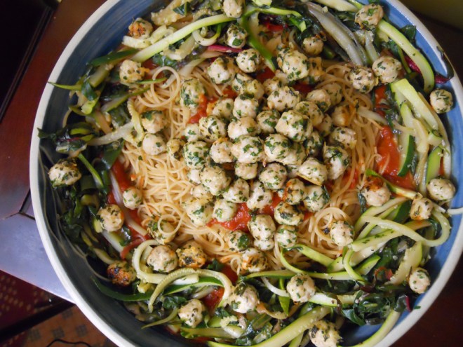 — My sister, Maralee, came down a day early so that we could cook together. We made the family’s traditional tzimmes topped with potato kugel. It’s an eye-popping mammoth dish which we make year after year but have come to realize that no one particularly cares for it. It’s a bad habit. We think that my dad likes it and that’s why we made it this year. But we’re considering the possibility that he also finds it bland and is just being polite.