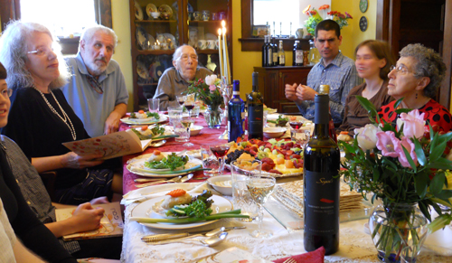 Passover Seder is the night when everything comes out of the china cabinet. The beauty of the ceremony of the Seder meal is matched by the beauty of the table. Our family and friends join us as we read from the Haggadah, with just the right balance of solemnity and fun. We eat the strangest combination of foods which we religiously prepare according to our mother’s recipes — recipes which for the most part have not been written down.