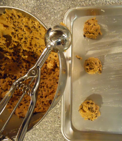 Pick up one of these small scoops at a kitchen specialty store. Drop cookies can be made quickly, and will be of uniform size.