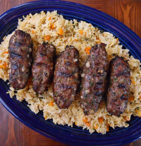 I’m still working on the box of lamb that I bought with Dorothy, and have been searching for something different to do with the ground lamb. Tonight I tried a recipe from Aromas of Aleppo, a book that Isabel Baker gave me. Isabel runs a fine children’s book catalog company and she knows good books. This gorgeous cookbook describes the cuisine of Aleppian Jews, who migrated from Syria to the U.S. in the early twentieth century. The lamb is exotic, yet so easy to prepare, combining finely chopped onion, allspice and cinnamon.