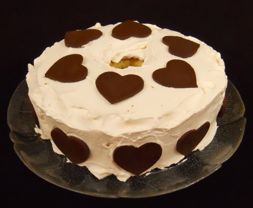 This cake has evolved through the generations: My grandmother came up with the cake idea; my mother added the coffee to the whipped cream; I added the chocolate cut-outs.