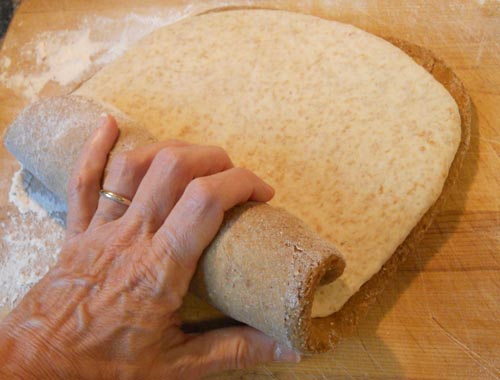 Into the other bowl stir in the following, then knead, adding extra white flour as needed until you have a smooth and elastic dough: