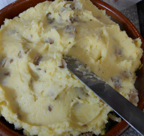 The finished Cafe Meat Pie, with nicely browned potato peaks.