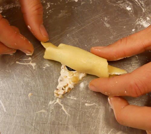 Our pie had meat, napa cabbage, left over green beans, frozen peas, chopped carrots and grated zucchini.