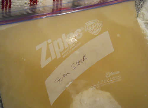 Two large bags of gefilte fish stock had been waiting patiently in my freezer.