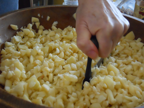 We’re getting there, but still more chopping to do. Maralee and I take turns.