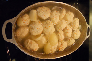 — Our friends down the street walked the pot of kosher chicken soup to our house, and the day before they dropped by the extra cooked chicken in case any of our house-guests wanted some kosher chicken salad.