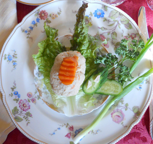 Gefilte fish are fish patties, served cold and topped with prepared horseradish. It’s made from a combination of white fish and pike. We modern women will sometimes include some salmon. The proportions are variable, but 2/3 white fish to 1/3 pike would be a good place to start. If you have a good fish counter at your grocery store, ask if they can take the fish off the bones, grind it, and then give all of it back to you — fish bones, head, tail and all.