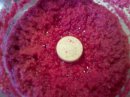 Making the horseradish was quite an experience! We started with a fresh horseradish root, peeled it, chunked it and put it in the food processor with some apple cider vinegar, some sugar, a little salt and a can of beets. Add and taste, add and taste. It did, as they say, clear our sinuses.