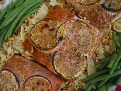 - 2 large lemons, washed, dried and sliced paper thin; remove seeds