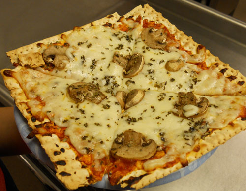 I used last night’s left overs and created this gourmet lunch of a matzo pizza topped with lemon asparagus and matzo meal baked chicken.